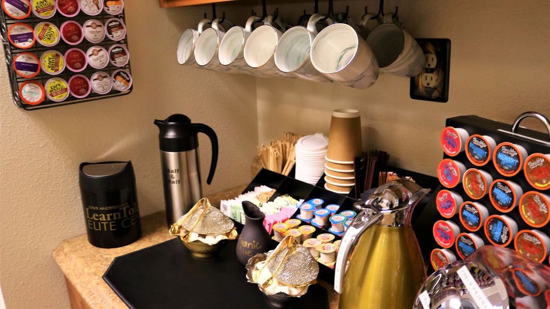 Hydration has a significant impact on mental energy, focus, and endurance - which is why we keep fresh Fiji water at each seat. Our fridge is likewise stocked with assorted soft drinks, sparkling waters, energy and sport drinks, and more. Two premium coffee stations provide guests a vast selection of coffees, teas, and elite mix-ins for customizing their drink of choice - including a milk steamer and frother.